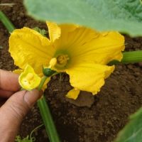 その後のかぼちゃの様子です。 5月27日 開花 雄花・雌花で交配をします。 雌花の下には、もう小さなかぼちゃの …