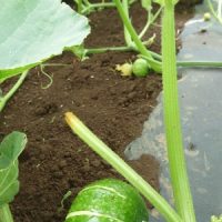 今年はミニとうがんの生育に陽気が合っているようで、生育順調です。 すでに実が大きくなり始めました。 大事に育て …
