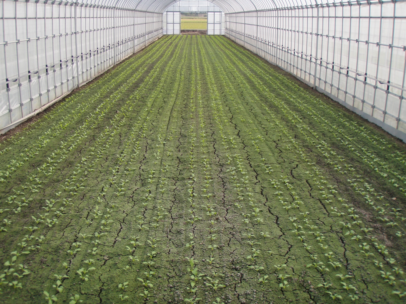 台風のときに完全に水没してしまったカブのハウスです。種がまいてあったので心配でしたが、ちゃんと芽が出ました。すごい!このまま無事に育ってくれることを祈ります。