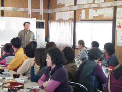 山田集荷場にて 人参・ごぼうの収穫体験をした後、本部で椎名副理事長からお話をしました。