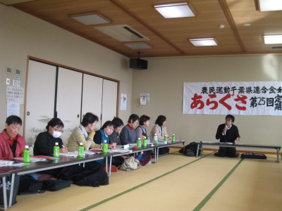 千葉県農民連 事務局次長の森吉秀樹さんより「TPPについて」のお話をいただきました。「TPPも、特定秘密保護法案も、減反政策の廃止もすべて繋がっているんです。危険な法案が勝手に決まってしまわないように、学習、運動していくことが大切。」とありました。