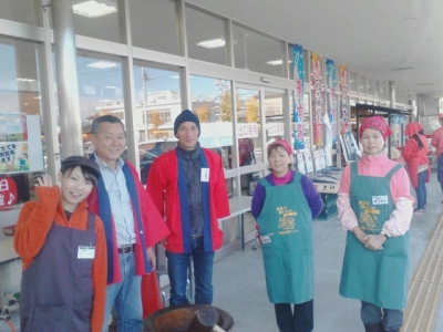 大宮店前での一枚。たくさんの方に来ていただき、ありがとうございました。最年末はおいしい「のしもち」をお届けしますので、みなさんご利用ください。