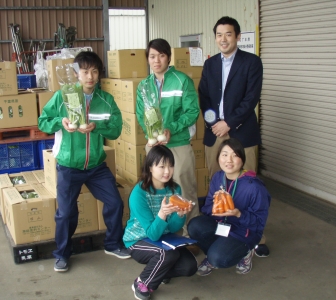 研修の最後に房総食料センターの野菜をもって一枚。みなさん一生懸命で、これから活躍してくれることが楽しみです。私たちも美味しい産直野菜を届けなければ!
