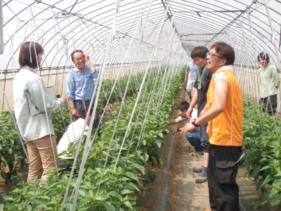 ピーマン部会が、種苗会社の技師さんを招いて、畑回りを行いました。