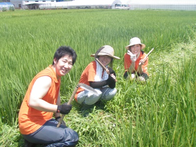 先日、ヴェルジェの役職員の皆さんが房総食料センターを訪れ、研修を行いました。日頃野菜の販売現場に立っている皆さんに、産地の様子を知ってもらう企画です。初日は田んぼの草刈りで始まりました。機械で刈っているところが多い中、鎌を手に持ち人力で、強力な草を刈っていきます。汗をぬぐいながらの作業です。ひとりでやっていたら投げ出したくなりますが、そこは人数の力。草刈り機械のヘルプも登場し、みるみる田んぼがきれいになっていきました。