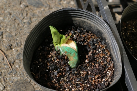 種の間から芽が出るものや、脇から出てくるもの、まだ葉の姿が見えないものなど、いろいろあり、面白いです。