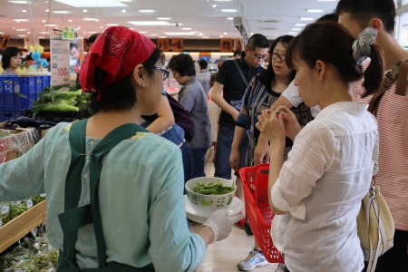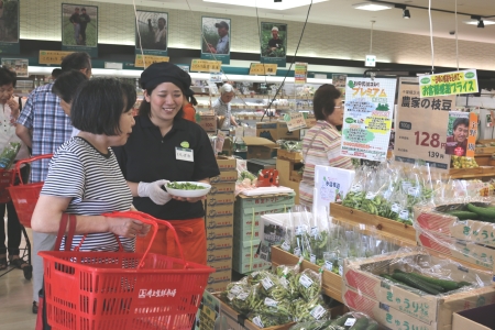 6月28日ヴェルジェ大宮店で枝豆の試食販売をしました。