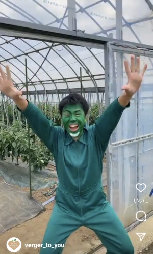 vergerの広報担当:山元さんが、緑色になって気合十分!