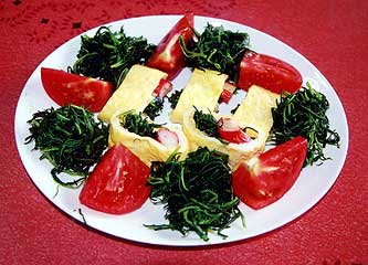 卵は、完全に焼くよりも半生の方がやわらかく、おかひじきと絶妙にマッチして美味しいです。